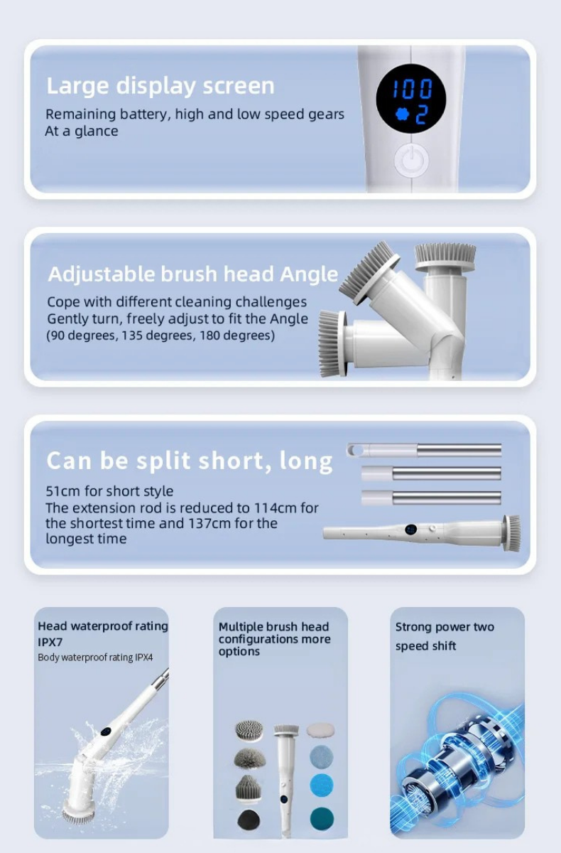 Scuva™ CleanSpin PRO Cordless Electric Spin Scrubber With 8 Replaceable Brush Heads